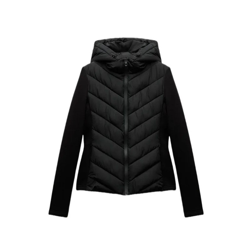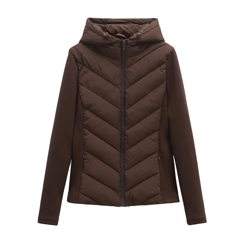 Damska zimowa kurtka Polyesterowa kurtka na zamek z kapturem Ciepły wygodny płaszcz na chłodne dni Ocieplana zimowa kurtka do codziennego noszenia
