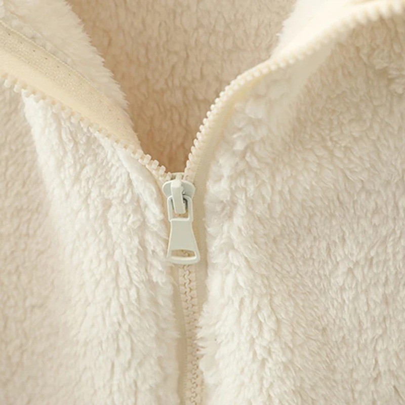 Pluszowa zimowa kurtka z poliestru z wysoką stójką, miękką, ciepłą powierzchnią i zapięciem na zamek zapewnia komfort, ciepło i styl na zimowy okres. Pełny opis