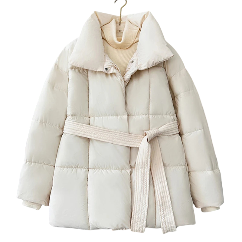 Damska zimowa kurtka Zapinanie na zamek i napy Kołnierz Sznurek w pasie Poliester bawełna Ciepły zimowy płaszcz Elegancka wygodna kurtka na chłodne dni
