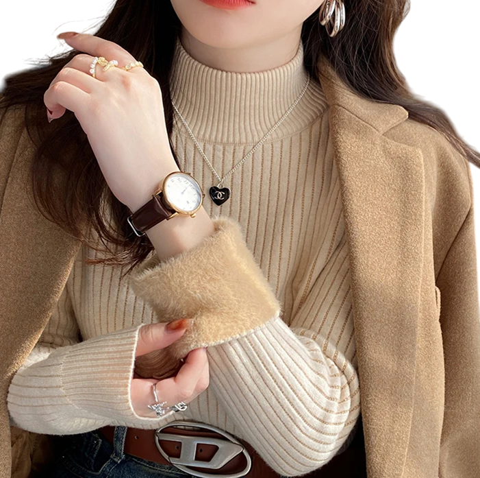 1× damski sweter z golfem i pluszowym podszewką