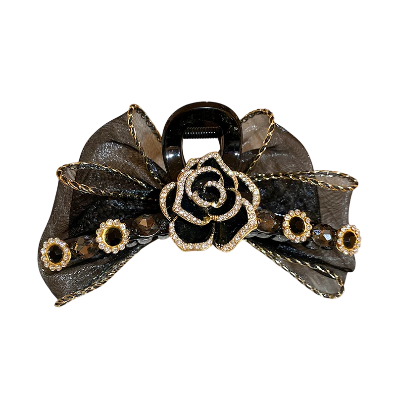 Elegancki damski klips do włosów z dekoracyjną kokardą i wyrazistą ozdobą w kształcie róży to luksowny dodatek na wyjątkowe i codzienne chwile. Delikatny przezroczysty materiał tworzy przewiewny efekt, a razem z błyszczącymi kamieniami nadaje fryzurze wyrafinowany i kobiecy wygląd. Ten dodatek do włosów jest idealny na uroczystości, przyjęcia, wydarzenia wieczorowy oraz eleganckie codzienne stylizacje. Dzięki praktycznemu zapięciu można szybko ułożyć włosy w kilka sekund bez skomplikowanego stylizowania. Ponadczasowy design pięknie uzupełni sukienki, bluzki oraz formalne stroje.