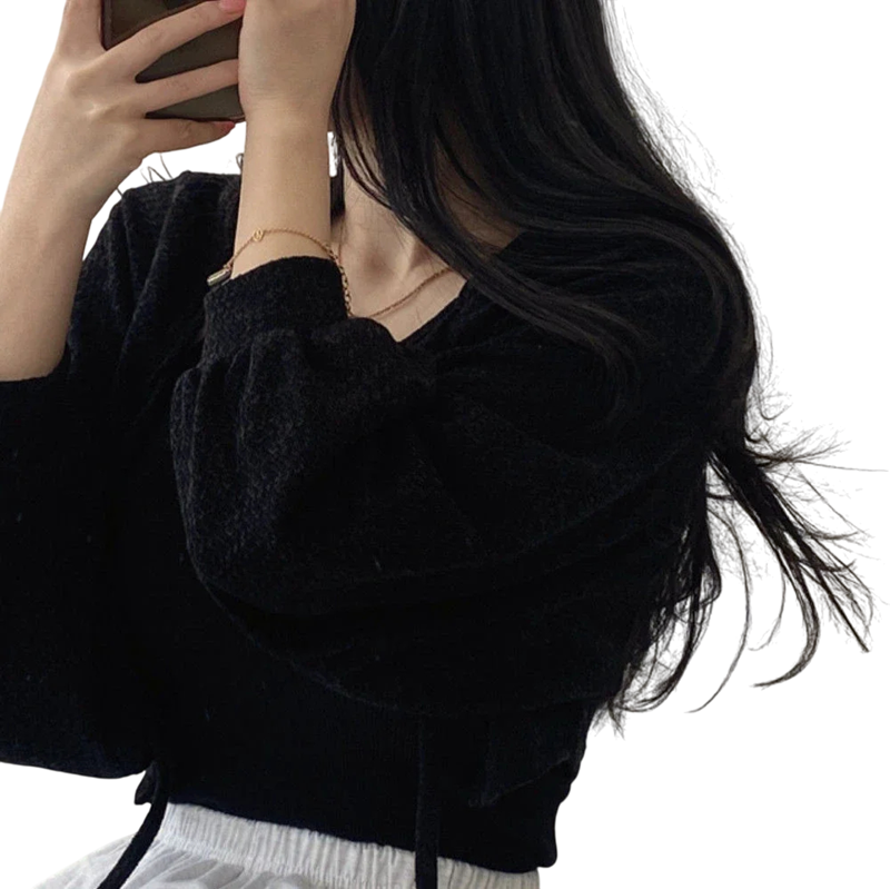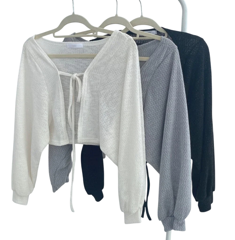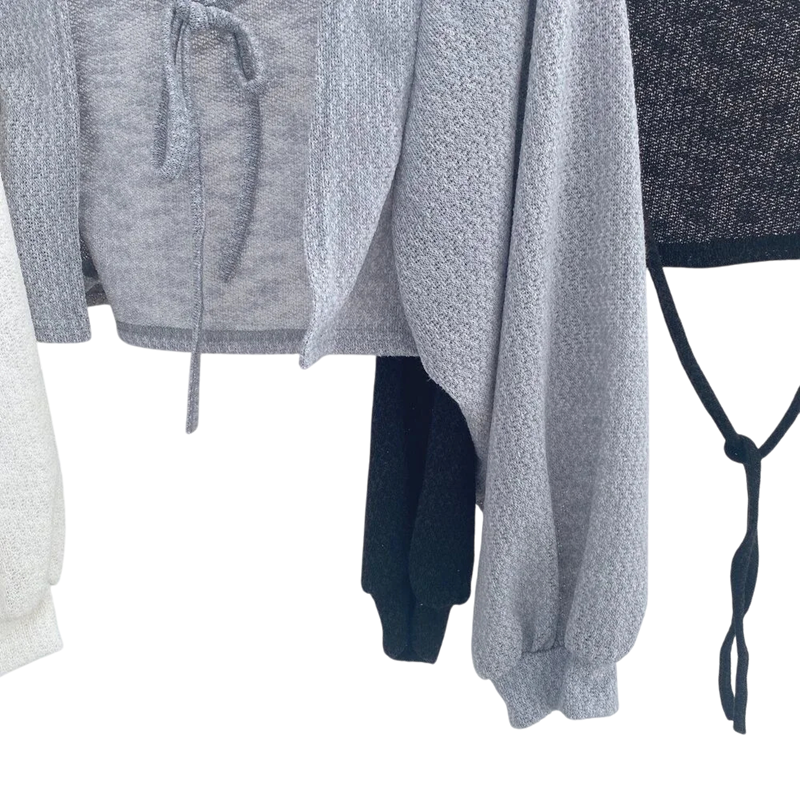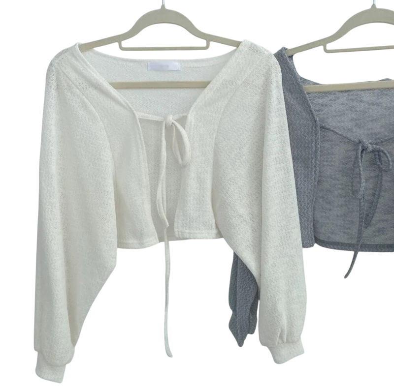 Damski letni kardigan z długim rękawem i wiązaniem na sznurki Jednokolorowy lekki sweter z acetatu, poliestru i wiskozy Elegancki top wierzchni