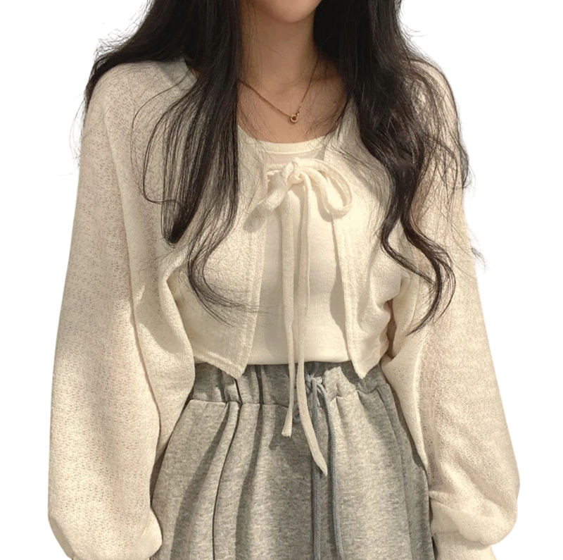 Tego damskiego letniego kardiganu z długim rękawem jest idealnym wyborem na ciepłe dni i chłodniejsze wieczory. Wykonany z wysokiej jakości mieszanki wiskozy, acetatu i poliestru, zapewnia wyjątkowy komfort, oddychalność i delikatność w dotyku. Lekka tkanina przyjemnie nosi się, nie przylega do ciała i jednocześnie chroni skórę przed słońcem. Kardigan ma eleganckie wiązanie na cienkie sznurki, które pozwala na łatwą regulację według potrzeb i nadaje strojowi kobiecy i romantyczny wygląd. Jednokolorowe wykonanie ułatwia łączenie z różnymi stylami mody.