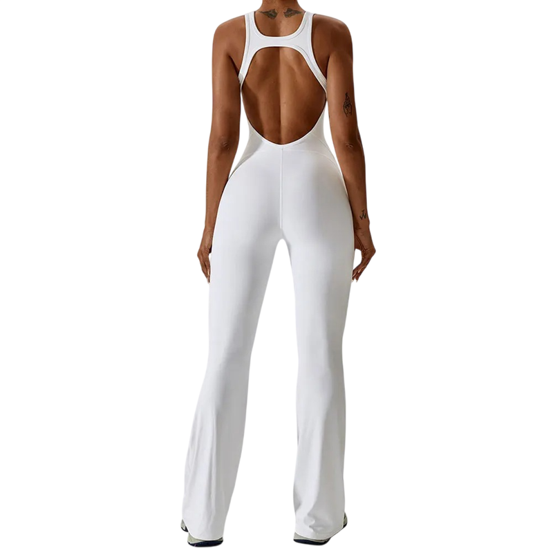 Elegancki damski sportowy overal odpowiedni na fitness, jogę i czas wolny, elastyczny materiał z odkrytymi plecami zapewnia komfort i swobodę ruchów. Pełny opis