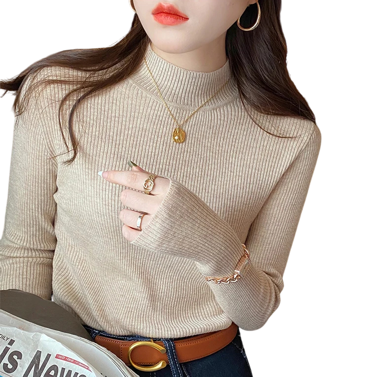 Damski sweter z golfem z poliestru i bawełny Jednokolorowy sweter dziany z długim rękawem Elegancki top w uniwersalnym rozmiarze na zimę