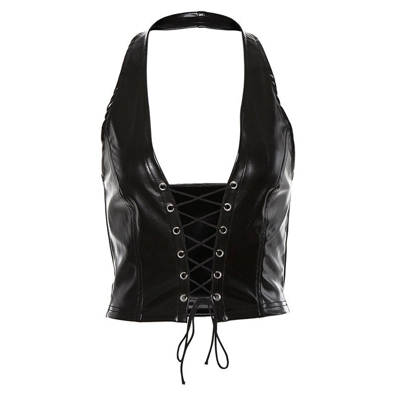 Damski top ze sztucznej skóry ze sznurowaniem