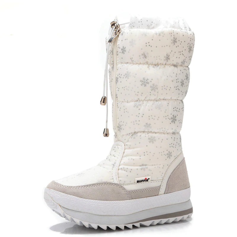 Damskie buty zimowe z nadrukiem płatka śniegu J1191