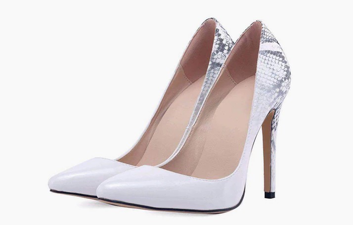 Damskie dwukolorowe szpilki z wzorem węża