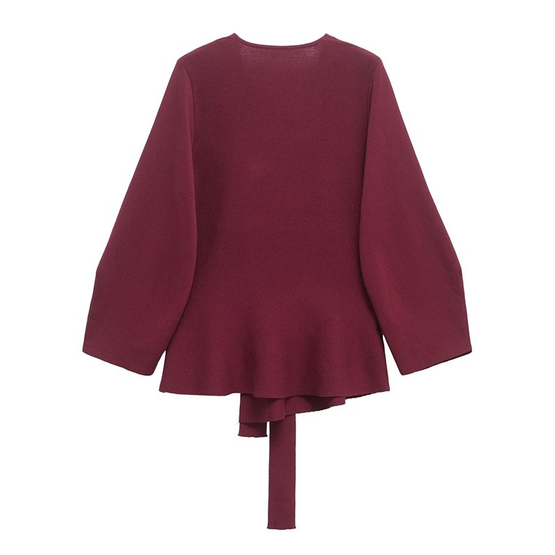 • Design: jednobarwny z dekoltem w kształcie V i paskiem do związania