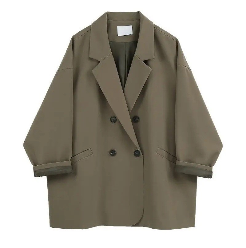 Strona główna Strona główna Odzież i akcesoria Odzież damska Marynarki damskie Damskie eleganckie żakiety z kołnierzykiem i kieszeniami Jednokolorowy żakiet na guziki z poliestru Stylowy płaszcz