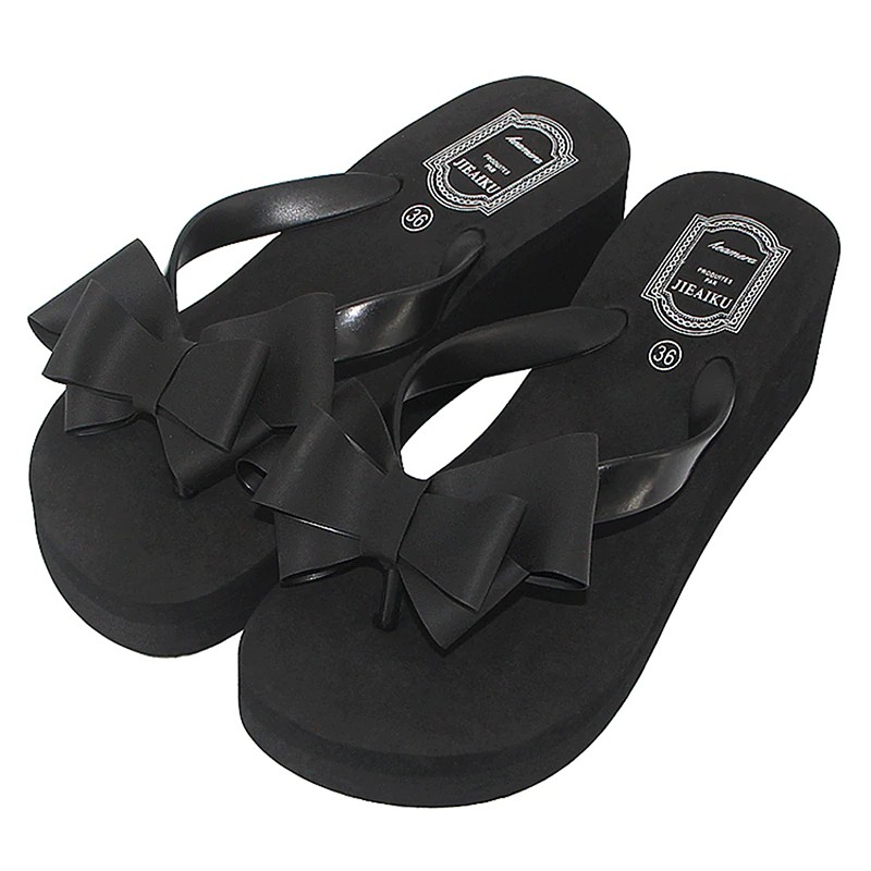 Damskie japonki na wysokiej platformie z kokardą