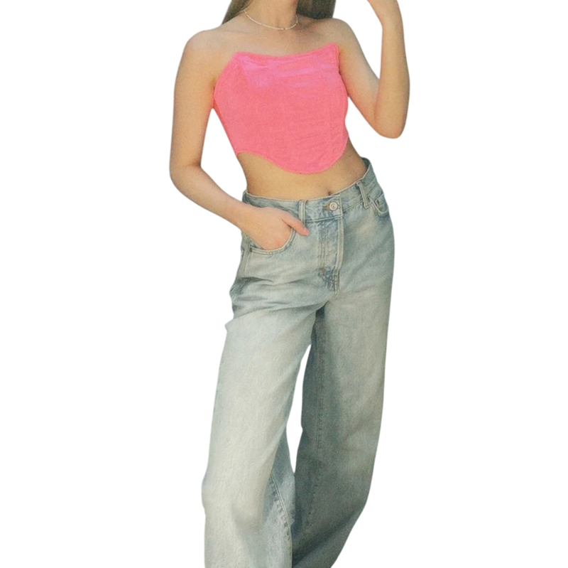 Elegancki krótki top bez ramiączek o koronkowym kroju, który modeluje sylwetkę. Elastyczny materiał zapewnia komfort i stylowy wygląd. Pełny opis