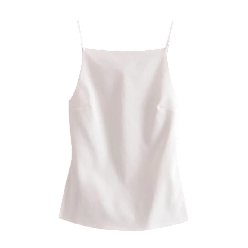 Damskie Koszulka z Okrągłym Wycięciem Cienkie Ramiączka Odkryte Plecy Jednokolorowy Letni Koszulka z Poliestru do Lekkiego Noszenia