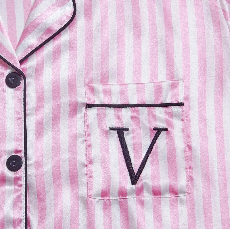 Eleganckie paskowane piżamo z koszulą na guziki i kieszonką z haftem. Lekki, miękki i elastyczny materiał dla komfortowego snu i relaksu. Pełny opis