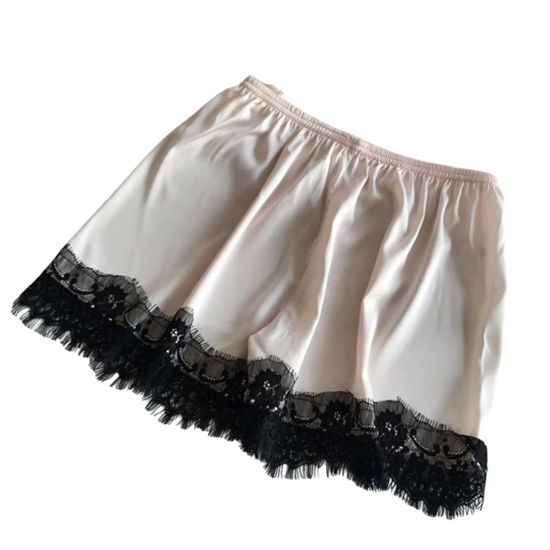 Luksusowe satynowe piżamo z jedwabiu z koronkowym wykończeniem, dekoltem w kształcie V i luźnymi szortami oferuje wygodę, styl i zmysłowy kobiecy wygląd. Pełny opis