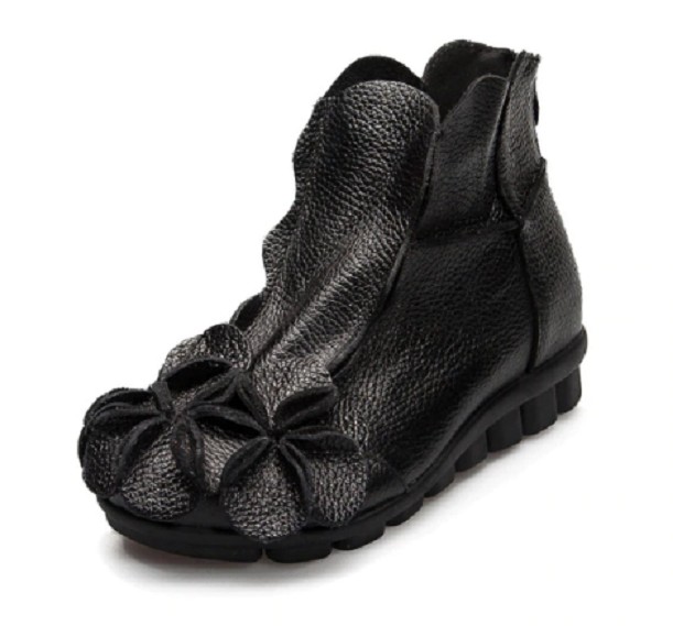 Strona główna Strona główna Buty Buty damskie Botki damskie Damskie skórzane botki z kwiatem