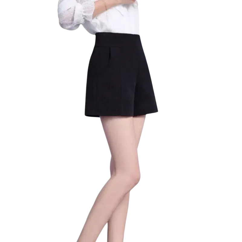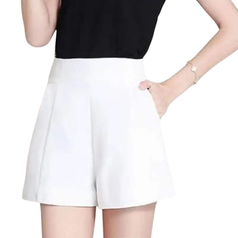 Stylowe i wygodne szorty z wysokim stanem i kieszeniami z lekkiego poliestru, idealne na lato, do pracy i na co dzień. Pełny opis