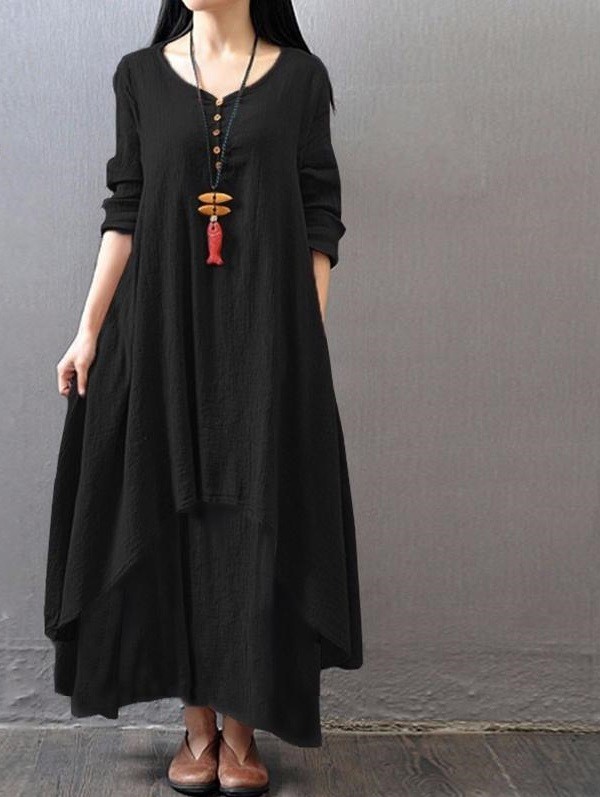 Długie, luźne sukienki z wydłużonymi rękawami.