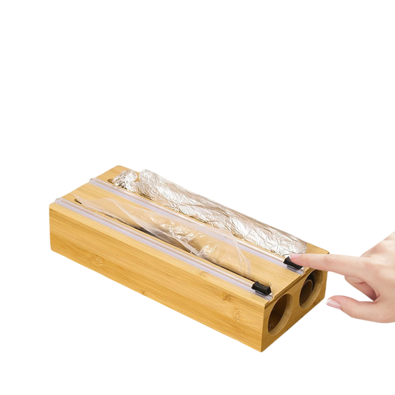 • Zawartość opakowania: 1× bambusowy dawkownik folii z nożem, 2× rolki folii spożywczej