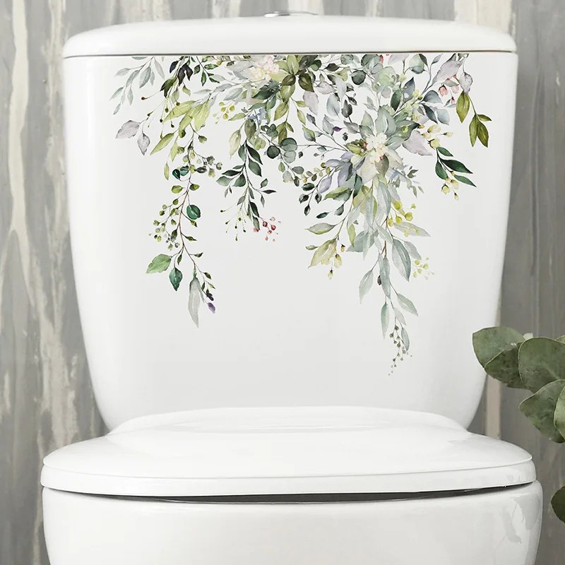 Dekoracyjna naklejka na zbiornik WC 28 x 25 cm Motyw naturalnych liści naklejka na toaletę Ozdoba łazienki Łatwa aplikacja