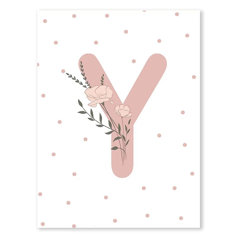 Dekoracyjny plakat 50 x 70 cm Kwiatowa różowa litera "Y" Obraz na płótnie bez ramy Minimalistyczna dekoracja ścienna do pokoju dziewczynki