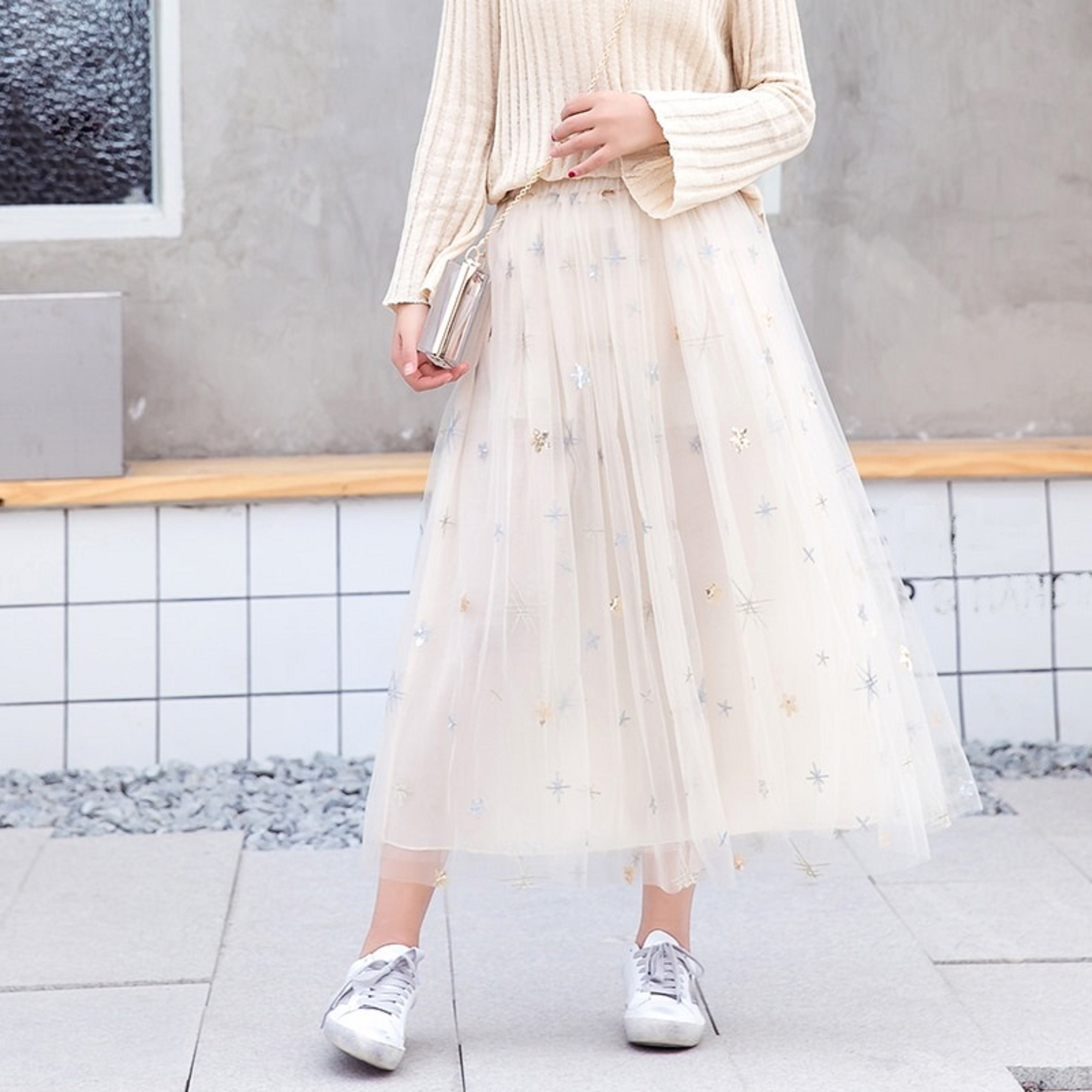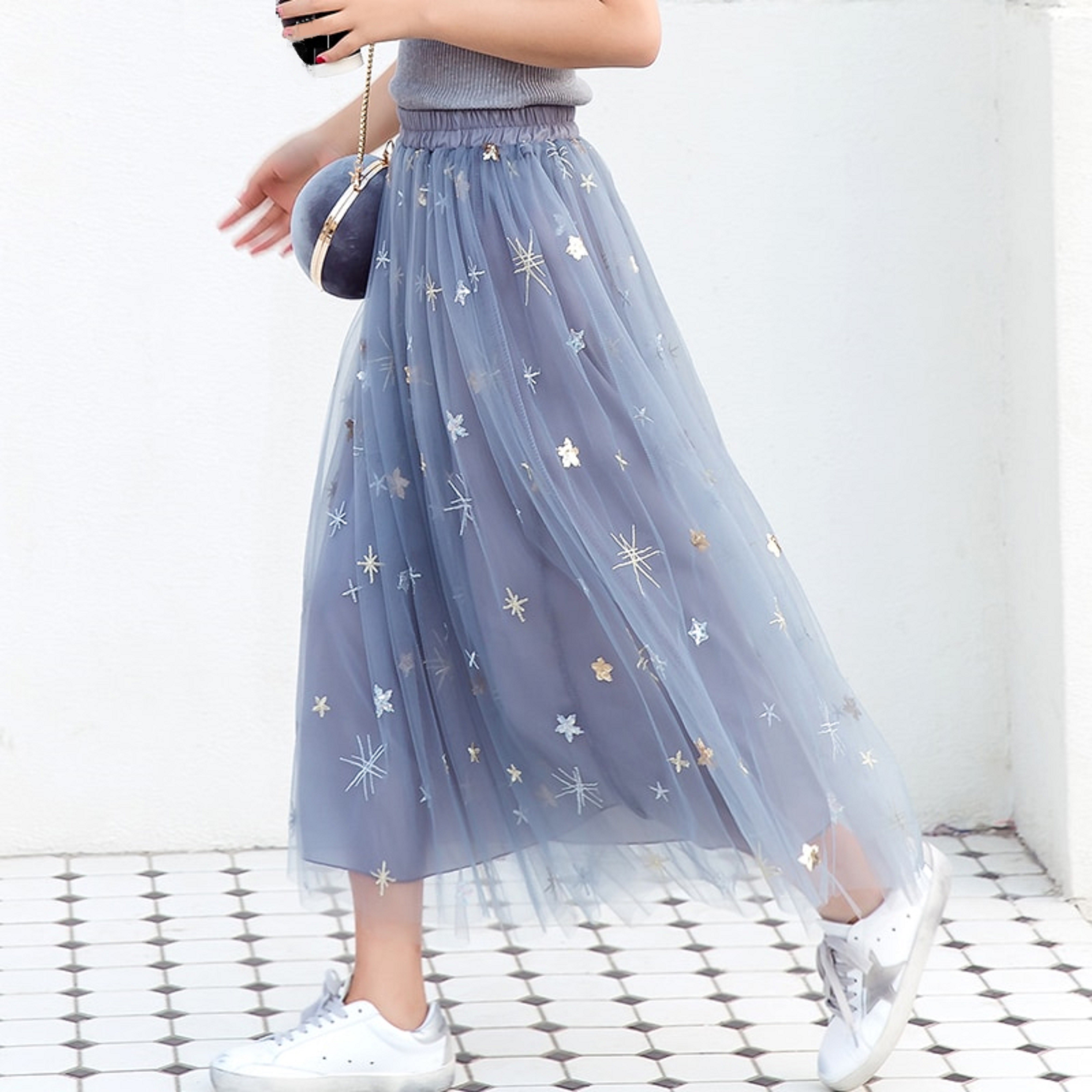 Długa tiulowa spódnica damska z gwiazdami