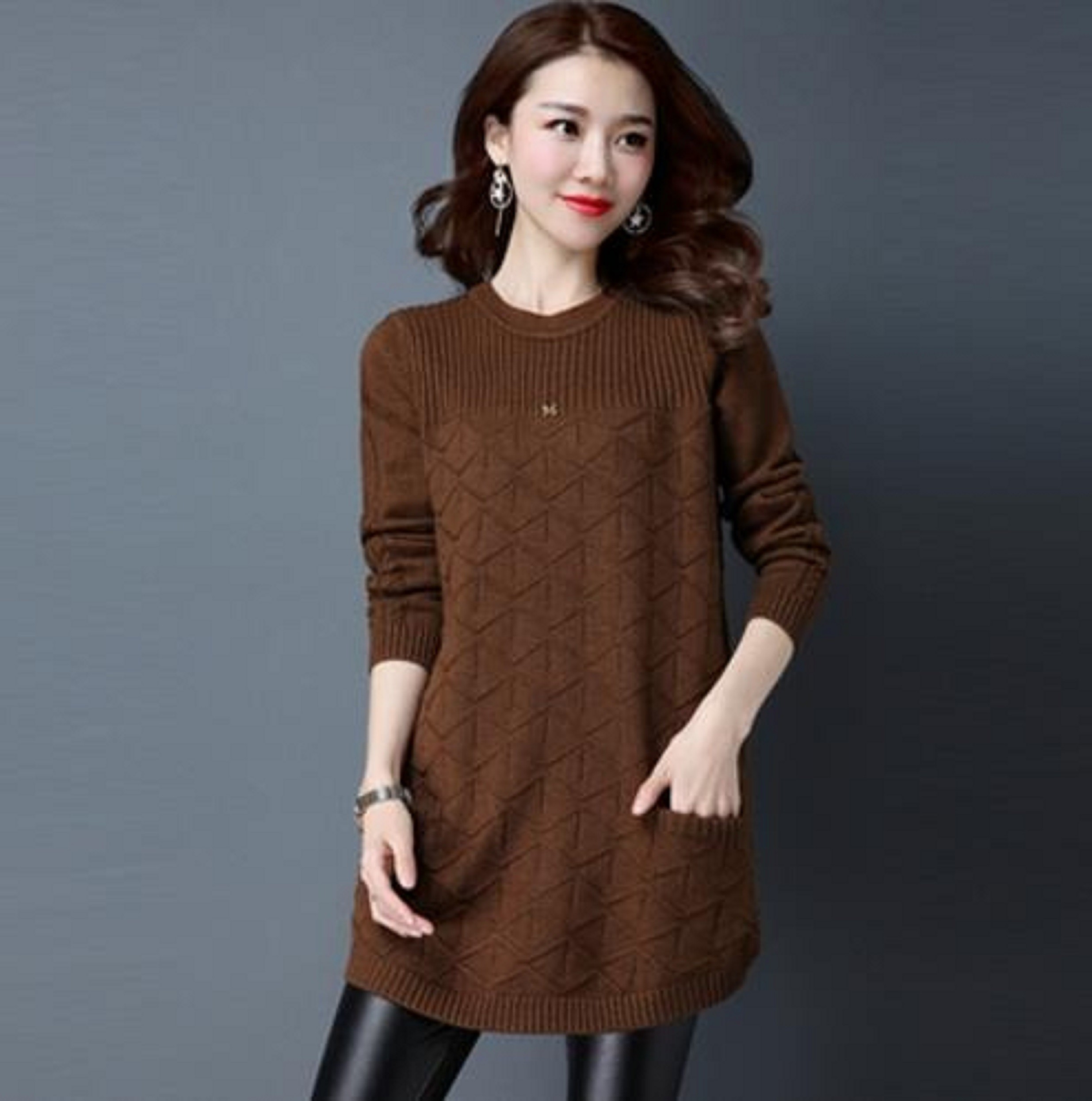 Długi sweter damski z kieszeniami