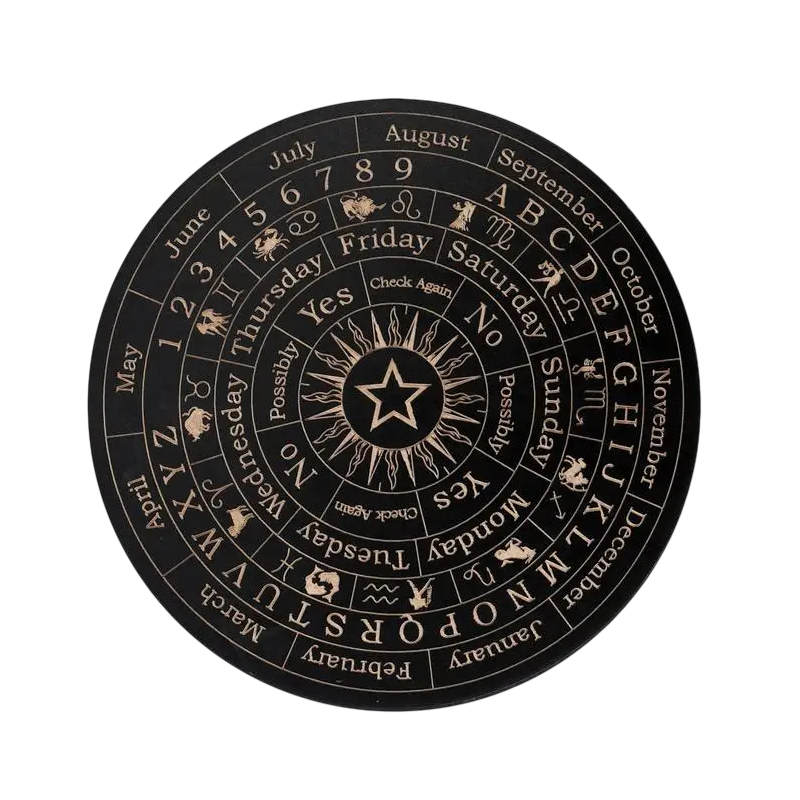 Duchowa drewniana deska z motywem miesiąca i gwiazd służy jako narzędzie do pracy z wahadłem, medytacji i rytuałów esoterycznych. Pełny opis