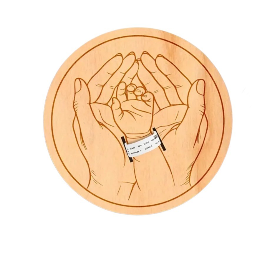 precyzyjnie wycięte otwory na etykiety z danymi noworodka, takie jak data, czas, waga i długość. Dzięki grubości zaledwie 0,2 cm jest lekka, łatwa do przenoszenia i idealna do zawieszenia oraz postawienia na półce.