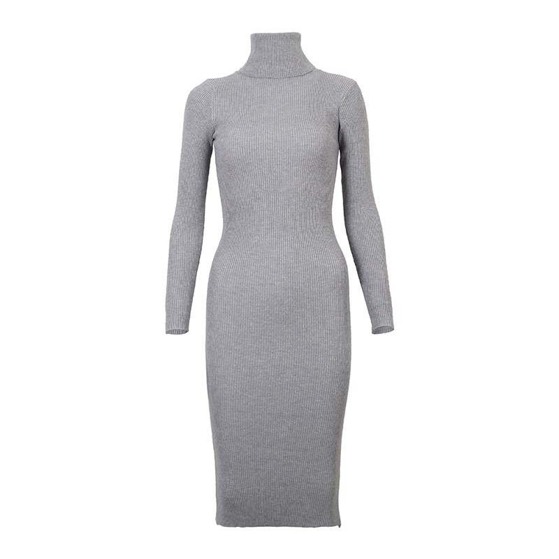 Ciepła sukienka z golfem, idealna na chłodniejsze dni.