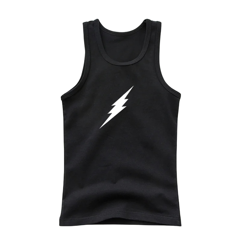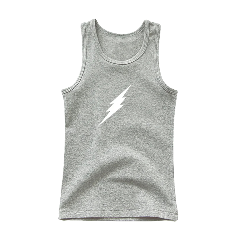 Dziecięca bawełniana koszulka z nadrukiem błyskawicy Jednokolorowa koszulka bez rękawów z okrągłym dekoltem Wygodny letni top dla chłopców i dziewcząt Różne kolory