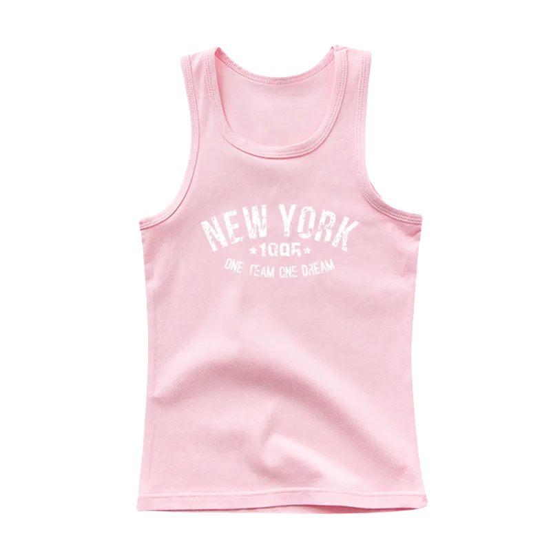 Strona główna Strona główna Odzież i akcesoria Ubranka dla dzieci Ubrania dla dziewczynek Podkoszulki dziewczęce Dziecięca bawełniana koszulka z nadrukiem New York Jednokolorowa koszulka bez rękawów z okrągłym dekoltem Stylowy letni top dla chłopców i dziewczynek Różne kolory