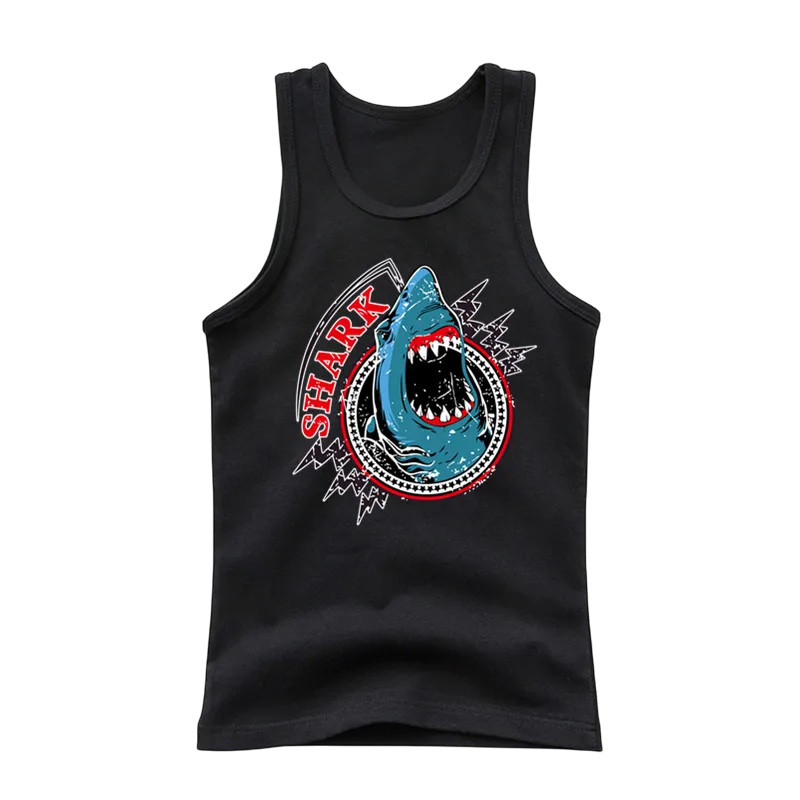 Dziecięca bawełniana koszulka z nadrukiem rekina Jednokolorowy top bez rękawów z okrągłym dekoltem Letni top dla chłopców i dziewcząt Wygodne różne kolory