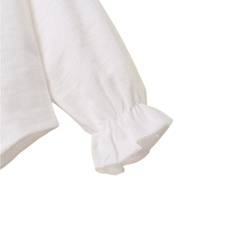Tego dziewczęca koszulka z długim rękawem wprowadza urok stylu koreańskiego do codziennej garderoby dziecięcej. Wykonana z wysokiej jakości materiału poliestrowego, który jest miękki, lekki i przyjemny w noszeniu. Koszulka wyróżnia się eleganckim ażurowym koronkowym kołnierzykiem, delikatnymi guzikami z przodu oraz ponadczasowym białym wykończeniem, które łatwo łączy się z innymi ubraniami. Dzięki swojemu romantycznemu designowi doskonale nadaje się na jesienne dni, wizyty, przyjęcia i codzienne noszenie.