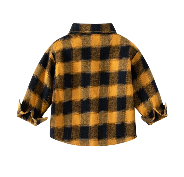 Dziecięca koszula w kratę żółto-czarna z kołnierzykiem Bawełniany top z długim rękawem na guziki dla chłopców Niemowlęce Wygodne ubranie