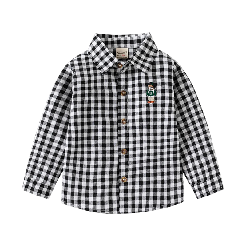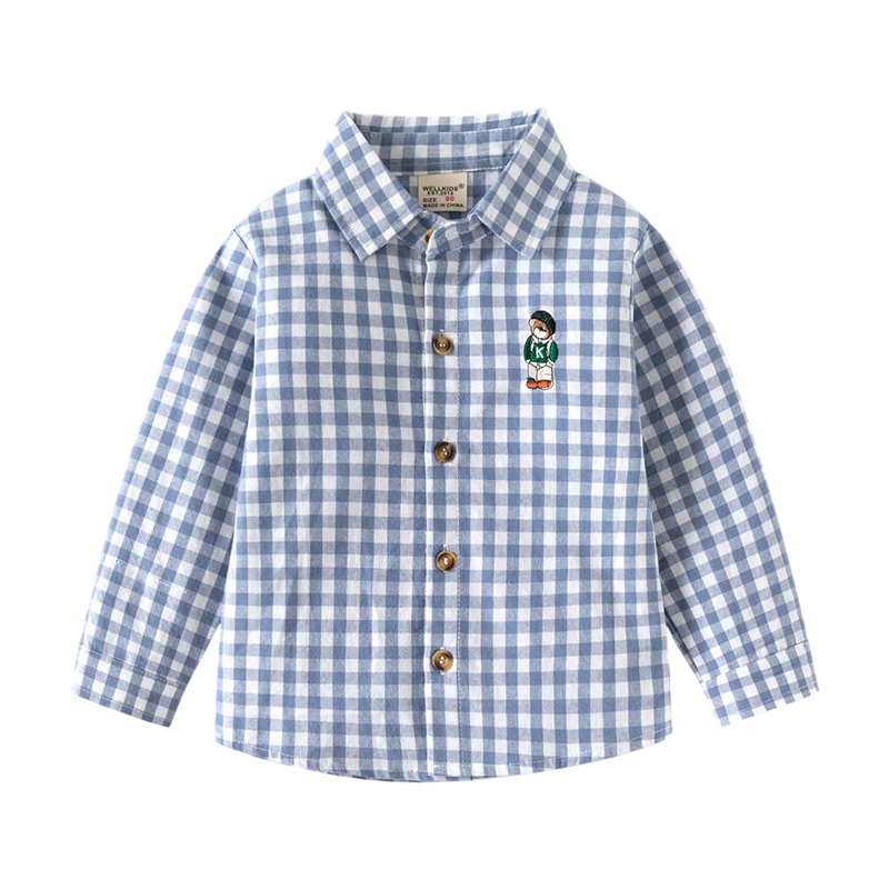 Dziecięca koszulka w kratę z kołnierzykiem Bawełniana bluzka z długim rękawem dla chłopców Niemowlęca Luźna koszulka na guziki Różne kolory