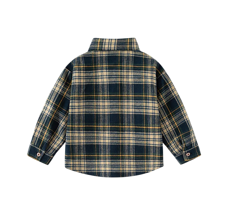 Dziecięca koszulka w żółto-czarną kratę z kołnierzykiem Bawełniana bluzka z długim rękawem Luźny top na guziki dla chłopców Niemowlęce Stylowe ubranie