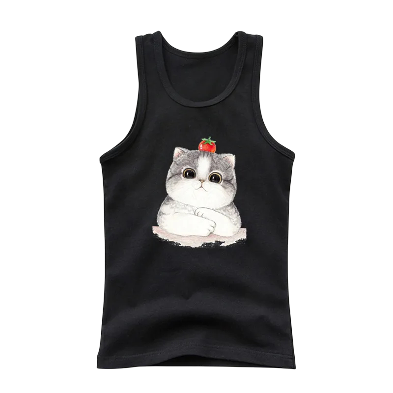 Strona główna Strona główna Odzież i akcesoria Ubranka dla dzieci Ubrania dla dziewczynek Podkoszulki dziewczęce Dziecięca letnia bluzka bez rękawów 100% bawełna Jednokolorowa koszulka z rysunkową kotką Księżniczkowy top dla dzieci Miękka wygodna bluzka różne kolory