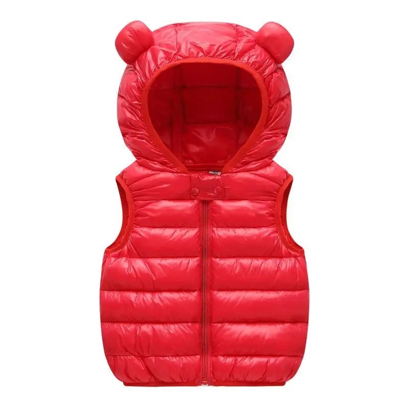 1× dziecięca puchowa kamizelka z kapturem i uszkami