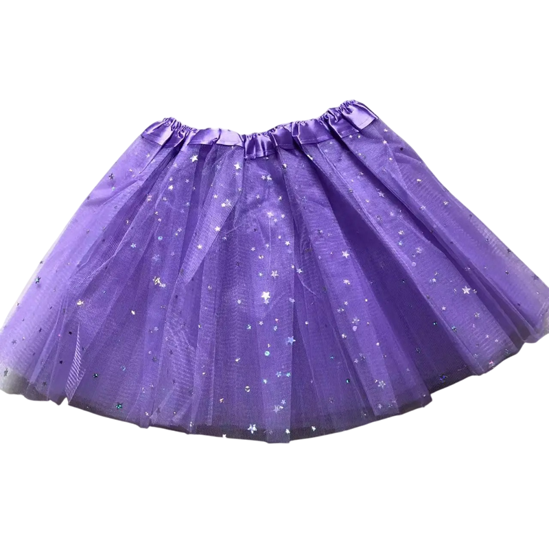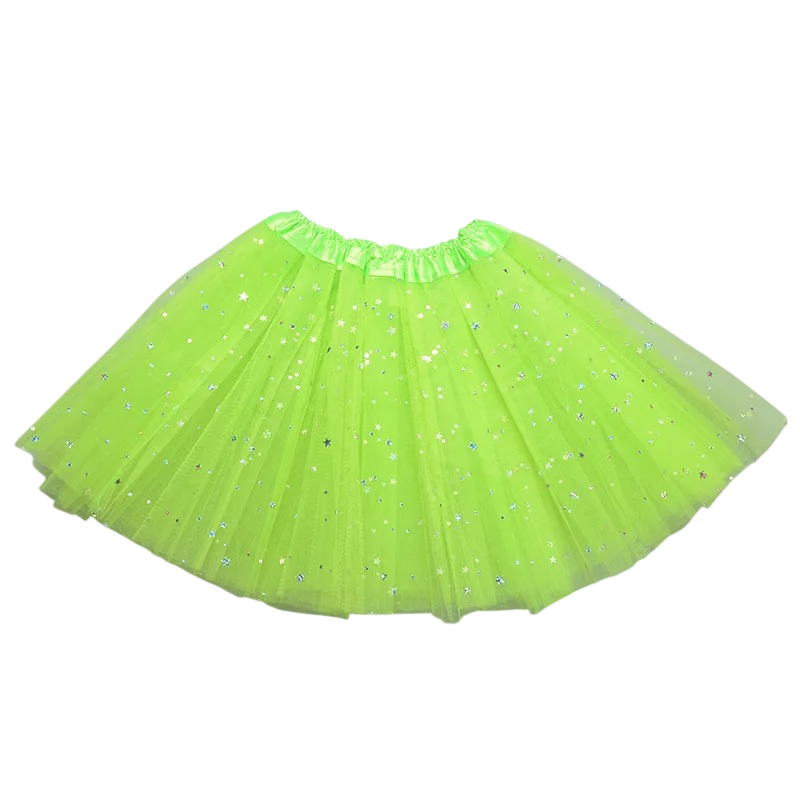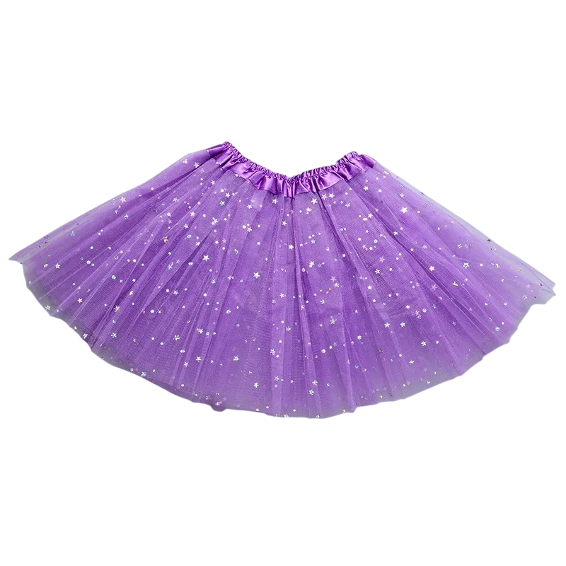 Koronkowa spódnica z brokatem dla dzieci 2–8 lat, długość nad kolana, lekki akryl odpowiedni na przyjęcia i sesje zdjęciowe. Pełny opis