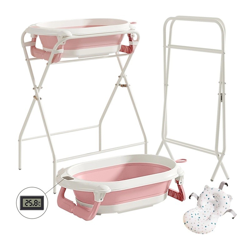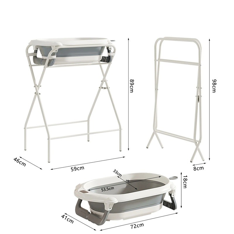 Dziecięca wanienka 3 w 1 ze składanym stelażem 72 cm metalowa konstrukcja do kąpieli niemowląt w domu i w łazience