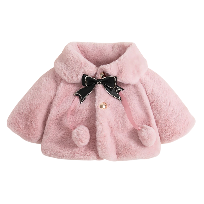 Dziecięca zimowa kurtka z kołnierzykiem i kokardką Ciepły poliesterowy płaszczyk dla małych dziewczynek Eleganckie zimowe ubranie na chłodne dni