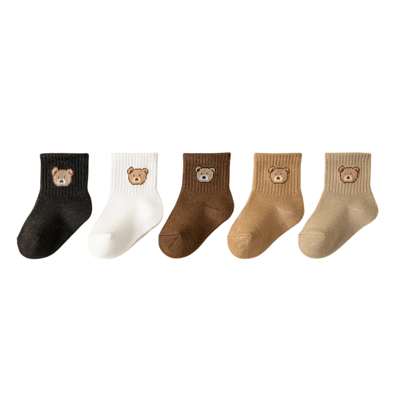 Dziecięce skarpetki unisex 5 parów Kolorowe skarpetki z motywem misiów Poliester wygodne elastyczne skarpetki dla dzieci do codziennego noszenia