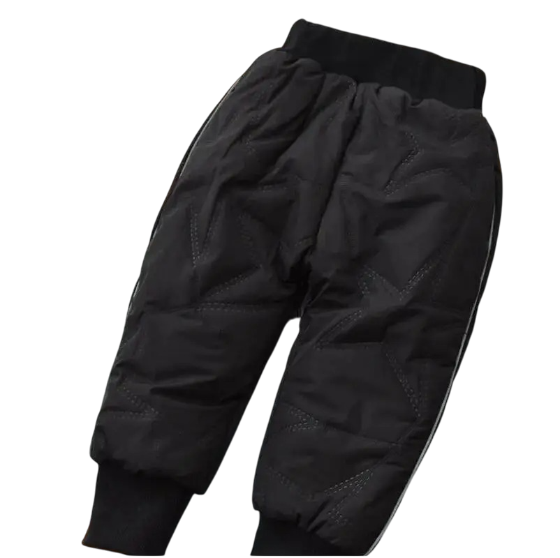 Ciepłe dziecięce zimowe spodnie z bawełną i kaszmirem, nieprzemakalne, z motywem gwiazd. Wygodny elastyczny pas, idealne do zimowych aktywności na świeżym powietrzu. Pełny opis
