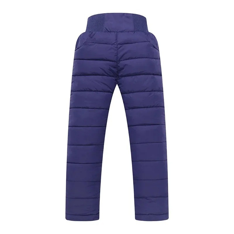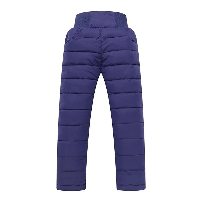 Ciepłe dziecięce zimowe spodnie z poliestru, wodoodporne i wygodne. Elastyczny pas na gumę dla łatwego zakupu, idealne do zimowych aktywności na świeżym powietrzu. Pełny opis