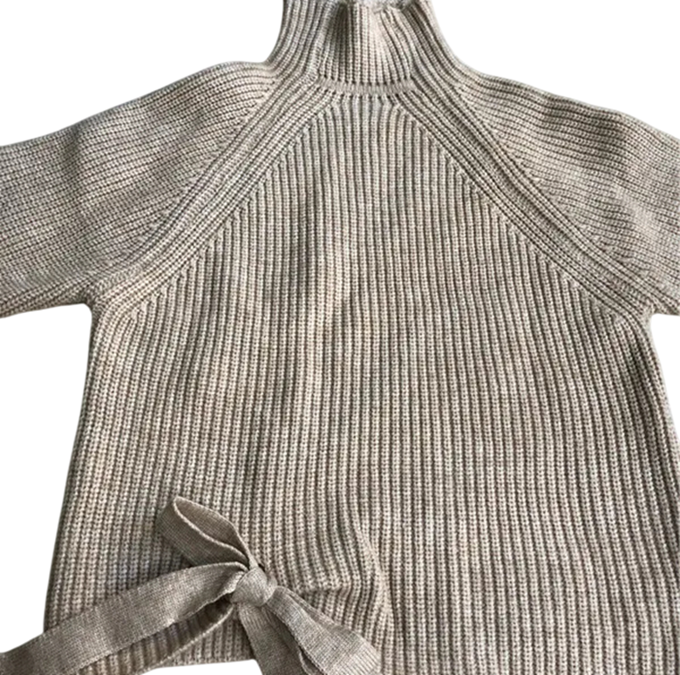 • Zawartość opakowania: 1 × dziecięcy pleciony sweter z golfem i kokardką