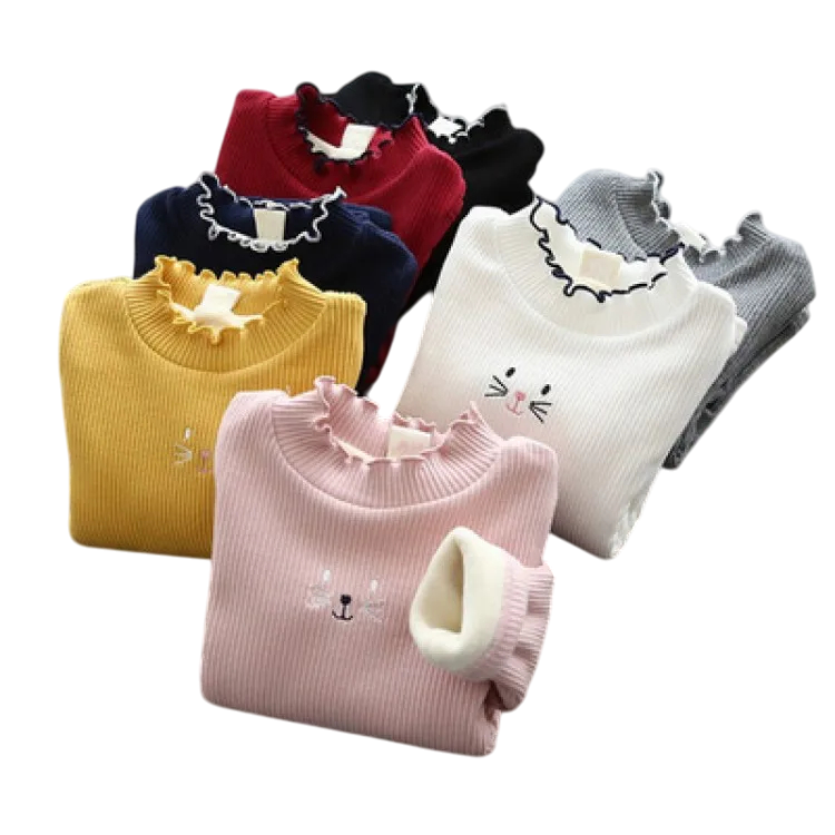 Strona główna Strona główna Odzież i akcesoria Ubranka dla dzieci Ubrania dla dziewczynek Swetry dziewczęce Dziecięcy pleciony sweter z wykończonym golfem i haftowanym motywem Jednokolorowy ciepły sweter z bawełny, akrylu i poliestru Stylowy top dla chłopców i dziewczynek