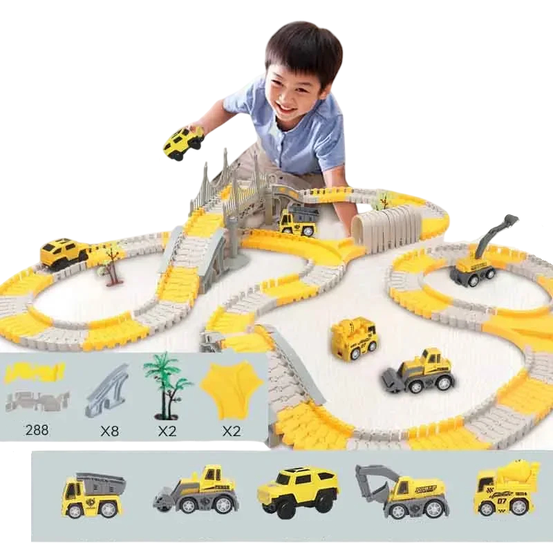 Dziecięcy tor wyścigowy do złożenia 334 sztuki Plastikowy tor dla dzieci Składany tor wyścigowy z akcesoriami Zabawny tor wyścigowy dla chłopców i dziewczynek