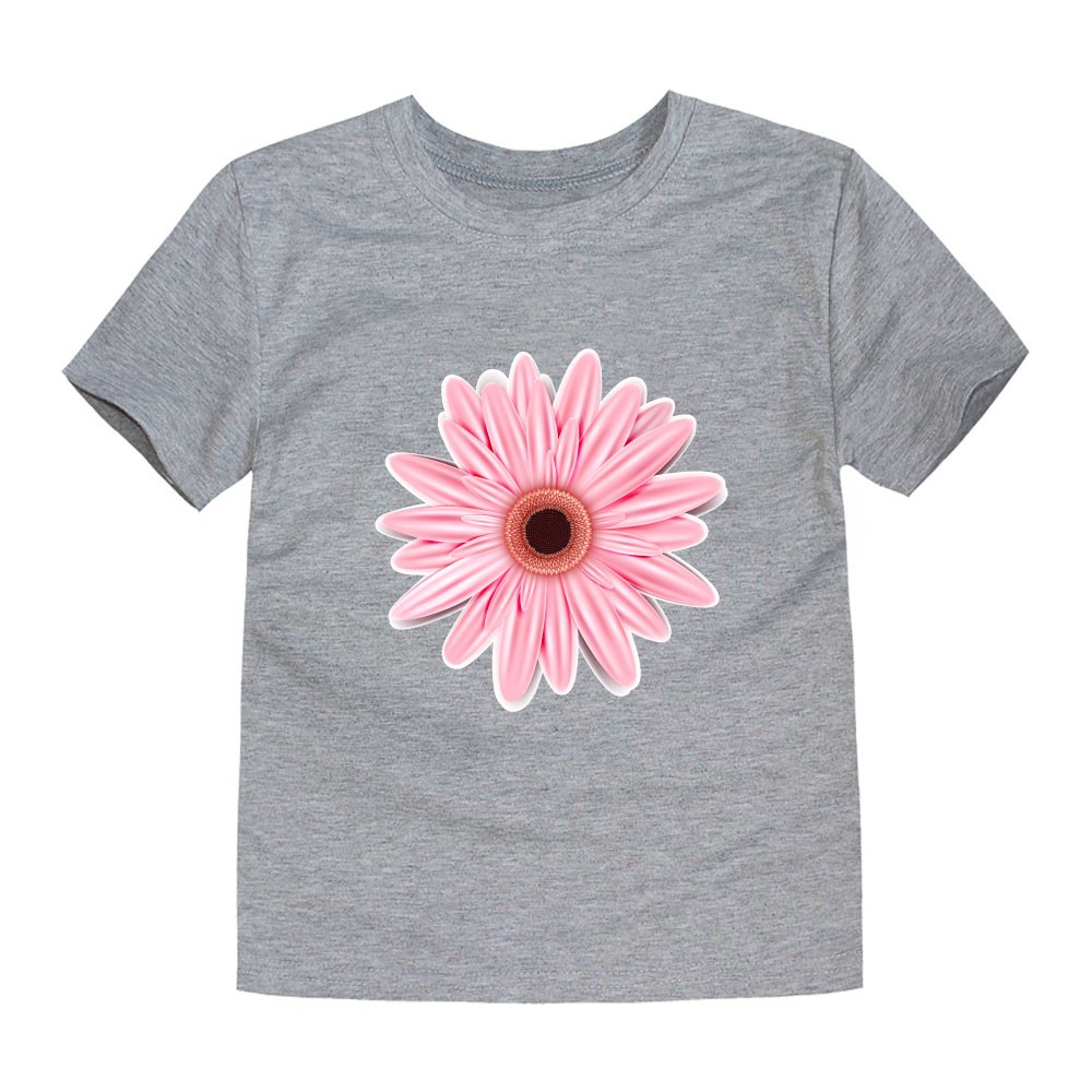 Śliczna koszulka dziewczęca z dużym kwiatkiem na środku.