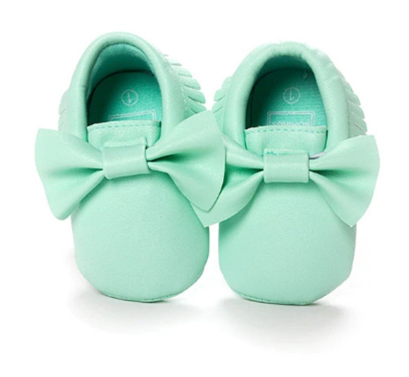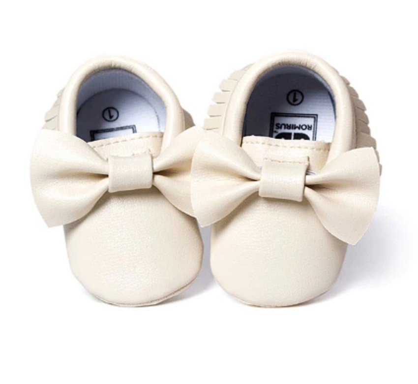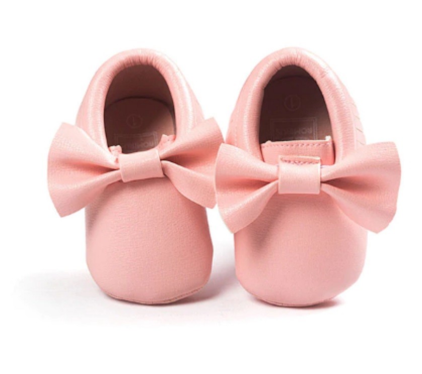 Dziewczęce kapcie z kokardą przeznaczone są dla najmłodszych dzieci.